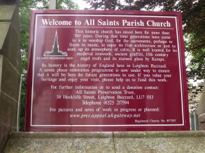 I happened up St. Laurence as they were preparing for a school leavers service so could only take a quick look. The signs are OK but do not mention that the church is open to visitors. I assume that the church is normally open. The website (www.stlaurencewinslow.org.uk/ ) doesn’t mention it.