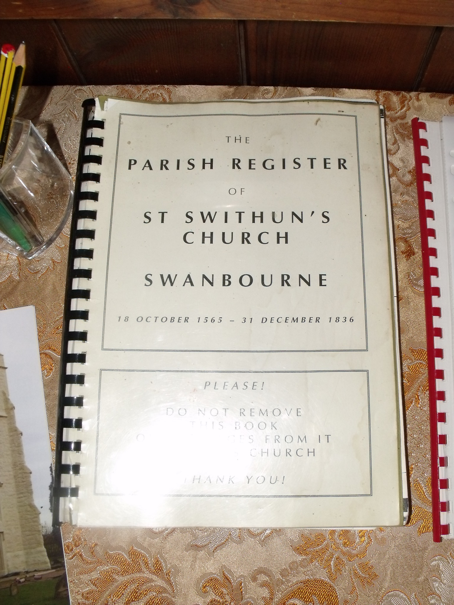 Inside was a simple church guide and some of the Diocese of Oxford leaflets. There is a children’s area but only 4 visitors in the book in the last year! A bit surprising really as St. Swithun’s is the sort of church worth seeking out. There are copies of the parish registers from 1565 – 1836 which must be of use to genealogists.