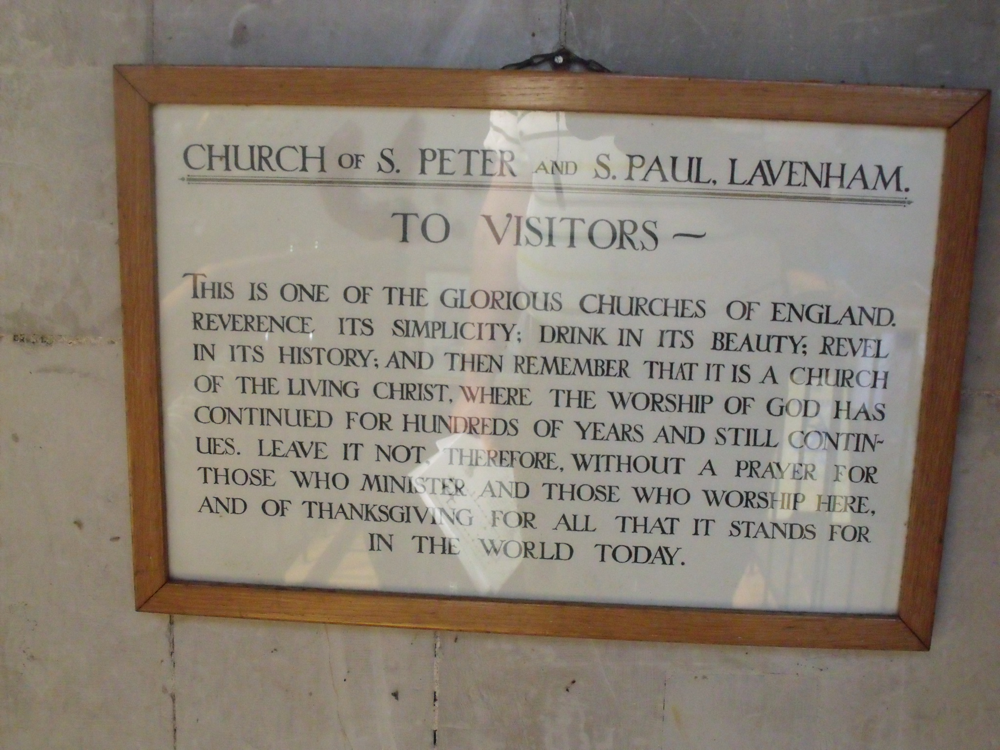 St. Gregory, Sudbury– there are two Anglican churches in Sudbury. St. Peter’s in the Market Place is now closed but used for exhibitions. St. Gregory’s is now the parish church. The signs outside are basic but there is a good welcome notice in the porch. Inside there was a good wedding booklet for couples thinking of marrying in church – a good idea worth copying. There is a children’s corner left set up. There is no guide book. There is a visitors book but there are no dates so this couldn’t be counted. There are quite a few visitors though. There is a votive stand to use and a prayer corner ( a very good one), with leaflets and prayers to use. A lot of thought has gone into this. There are also some good modern Stations of the Cross with an explanation.