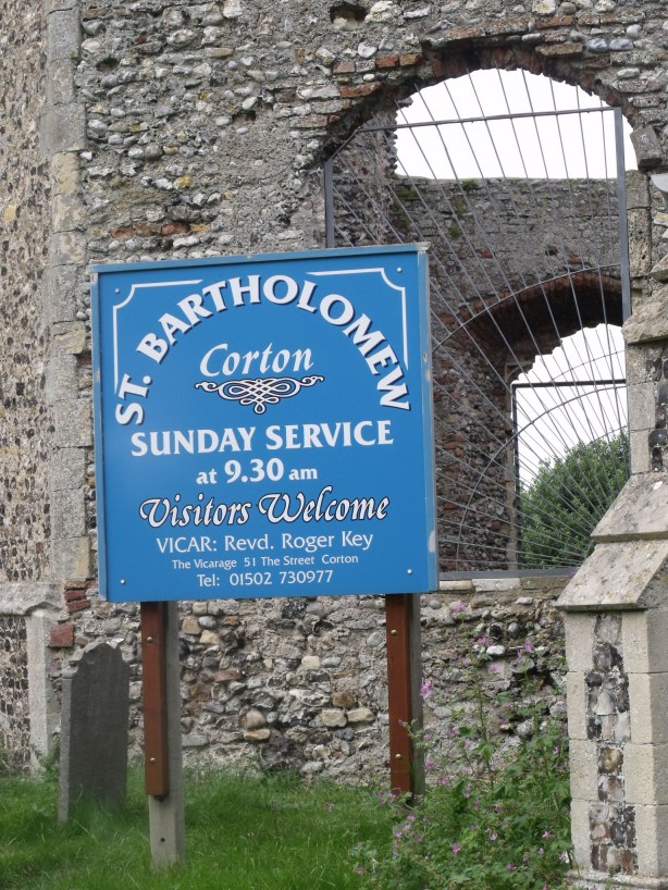 Also locked. Incidentally part of the same group of parishes as Corton. Here, the sign outside just gives details of services and the vicar but there is no indication when the church might be open. This is bas enough but a look into the (locked) porch has a prayer on the church door which says; ‘Lord make the door of this house wide enough to receive all who need human love and friendship..’ ! It is a job to know what to say about that. Very poor and a real missed opportunity, especially as Hopton has a holiday camp in it and there were quite a lot of people wandering around. This church could reasonably expect a fair number of visitors.