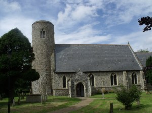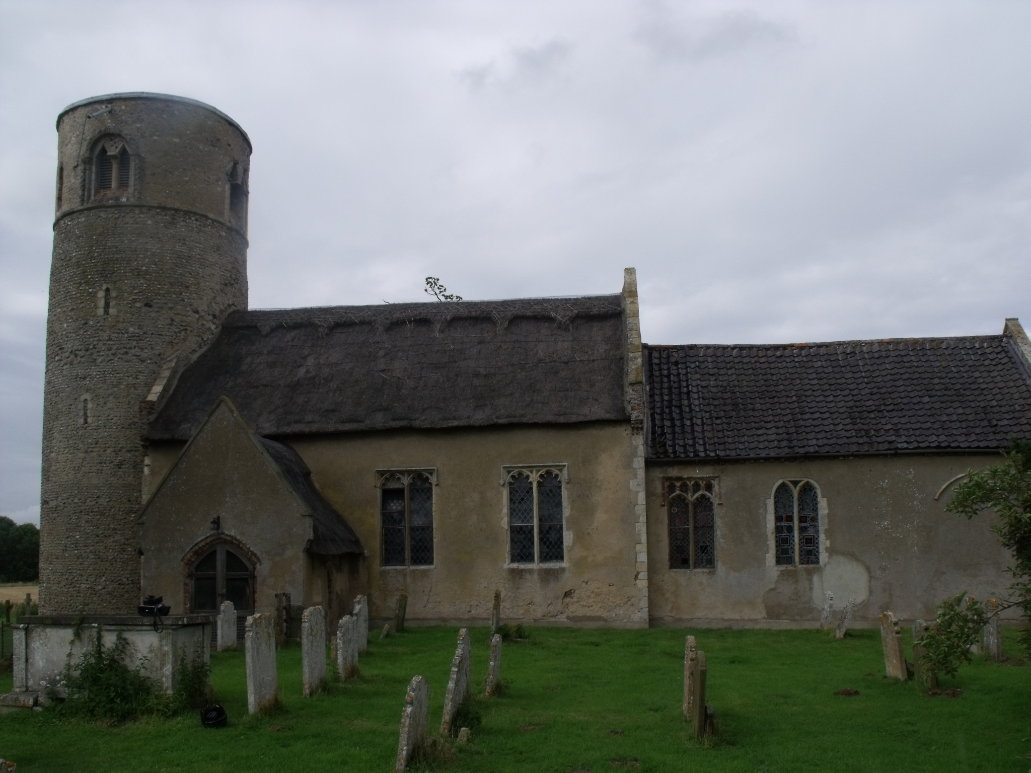 A lovely thatched church with a characteristic East Anglian round tower. This is currently closed for repairs to the chancel roof but is normally open. Worth a visit when it reopens. Rating OK.