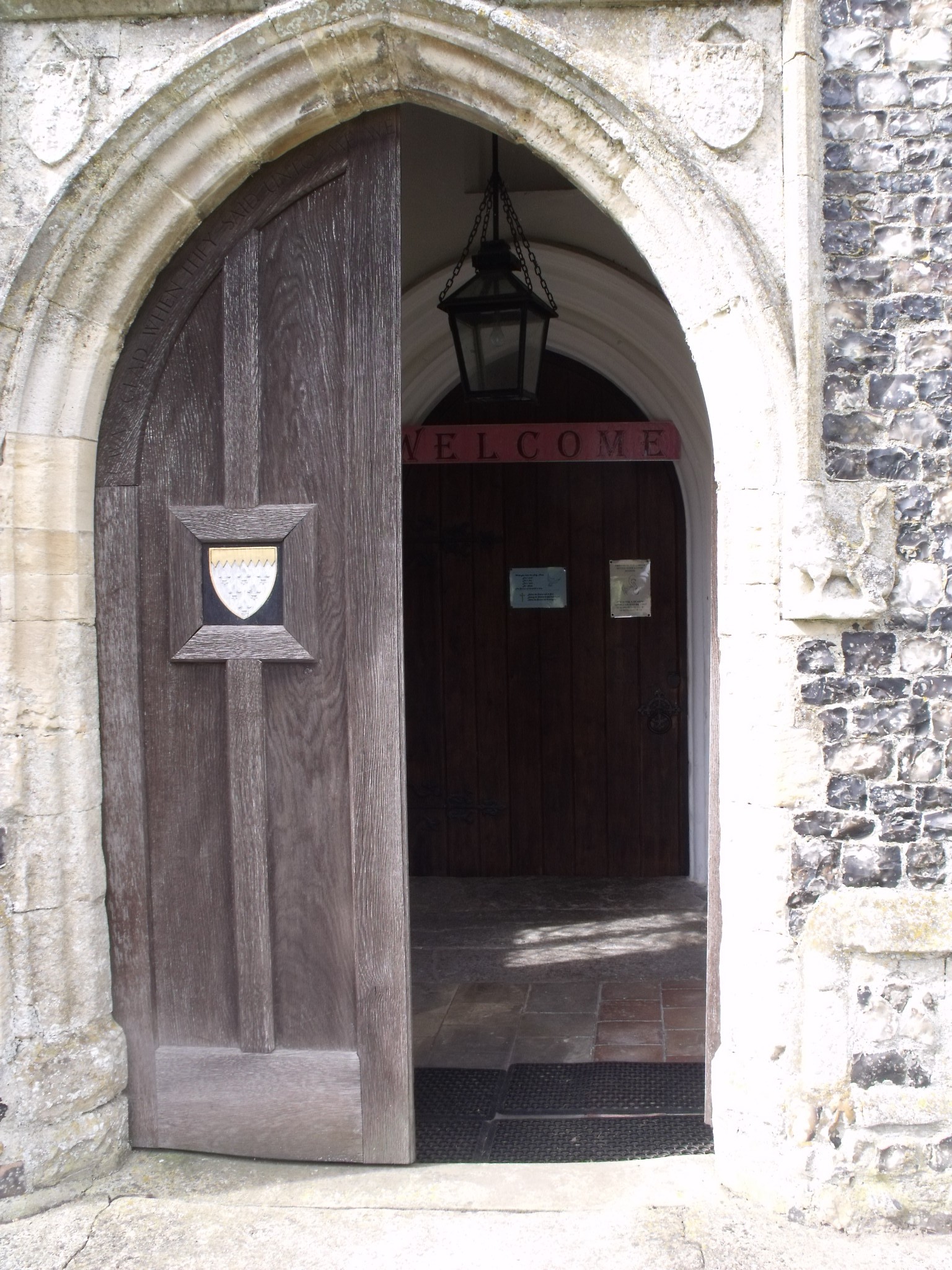 Another round towered church. Outside the sign is basic but there is a very good welcome awaiting in the porch – a large sign over the door which says ‘Welcome.’ Inside, there is a decided smell of incense! There is a good range of booklets and cards available as well as a book ‘This is what we believe’, which contains a series of sermons based upon the creed. Very good. There are also guide books, postcards, book marks, pens and some small crosses as well as some posters of prayers and verses. A very good range for what is a small,country, church. Also there is a folder of photos of a recent flower festival, a list of burials and memorials as well as a folder of details of Rectors of this parish. A delightful touch, including the story a a Rector who never was! (He got cold feet and left before he was inducted). There is also a statue of John The Baptist and a brief biography of him. The chancel is locked but visitors can easily seen in.