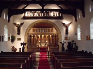 You really have to see this place to appreciate it but, as a taster, the pulpit is made from a bog oak with a new shoot with a candle on it, which appears to be growing out of the tree. This represents the light of Christ coming into the world. I rate this as good and it is very well worth seeing.