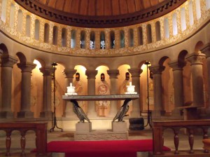 This is a most unusual church indeed. The vision of a certain Sara Losh who designed it herself. It is a surprise in a Cumbrian village. It is open every day and the lights come on automatically when you enter. There is a lot to see and a guide, as well as a full sized book, explain it all. There is a lot of symbolism. There is a good booklet entitled, ‘St. Mary’s, Wreay, A journey in Faith’ which helps with interpretation.