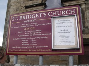 A distinctive church on the cliff top right next to the site of a Roman fort. It really should be open but isn’t! The sign outside says; ‘Thinking about coming to church. For heaven’s sake what are you waiting for? Service times are on the notice board we look forward to welcoming you. Rather says it all. ’ The website is at http://www.stbridgetschurchmoresby.btck.co.uk but there is no mention of opening times, despite there being a link to visit cumbria.
