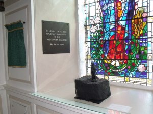 A simple note on how to pray was also on display, as well as a description of the Cross of Peace – a lovely item. There are other notable things here. A memorial, made of coal, to miners who lost their lives in the Whitehaven pits,