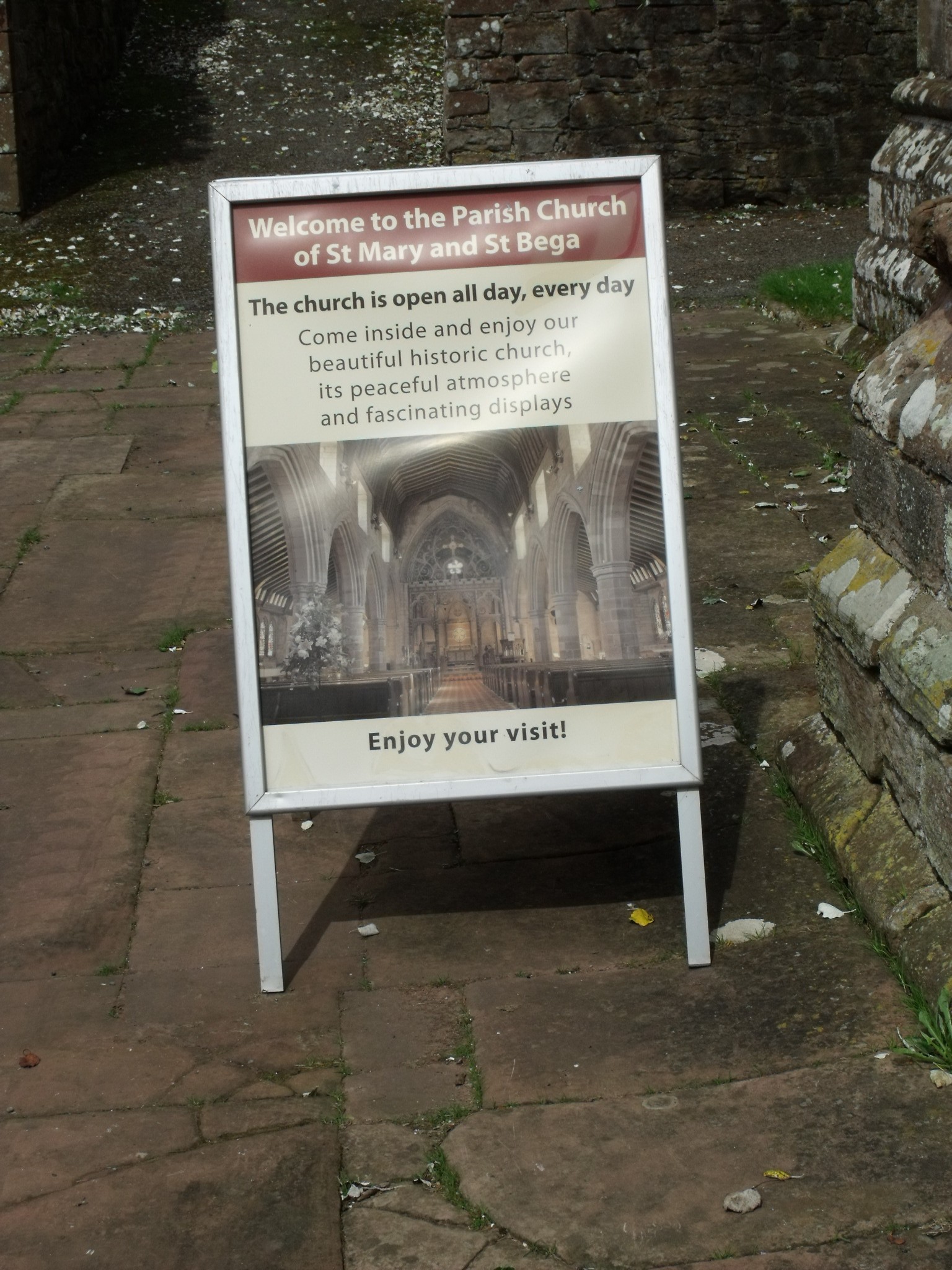 Some good displays help the visitor to understand the history of the priory. This is a good church to spend some time in and I rate it as excellent. A real example of what can be done with a bit of effort. 99 visitors in the book over the last month. http://www.stbees.org.uk gives more info.