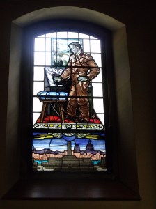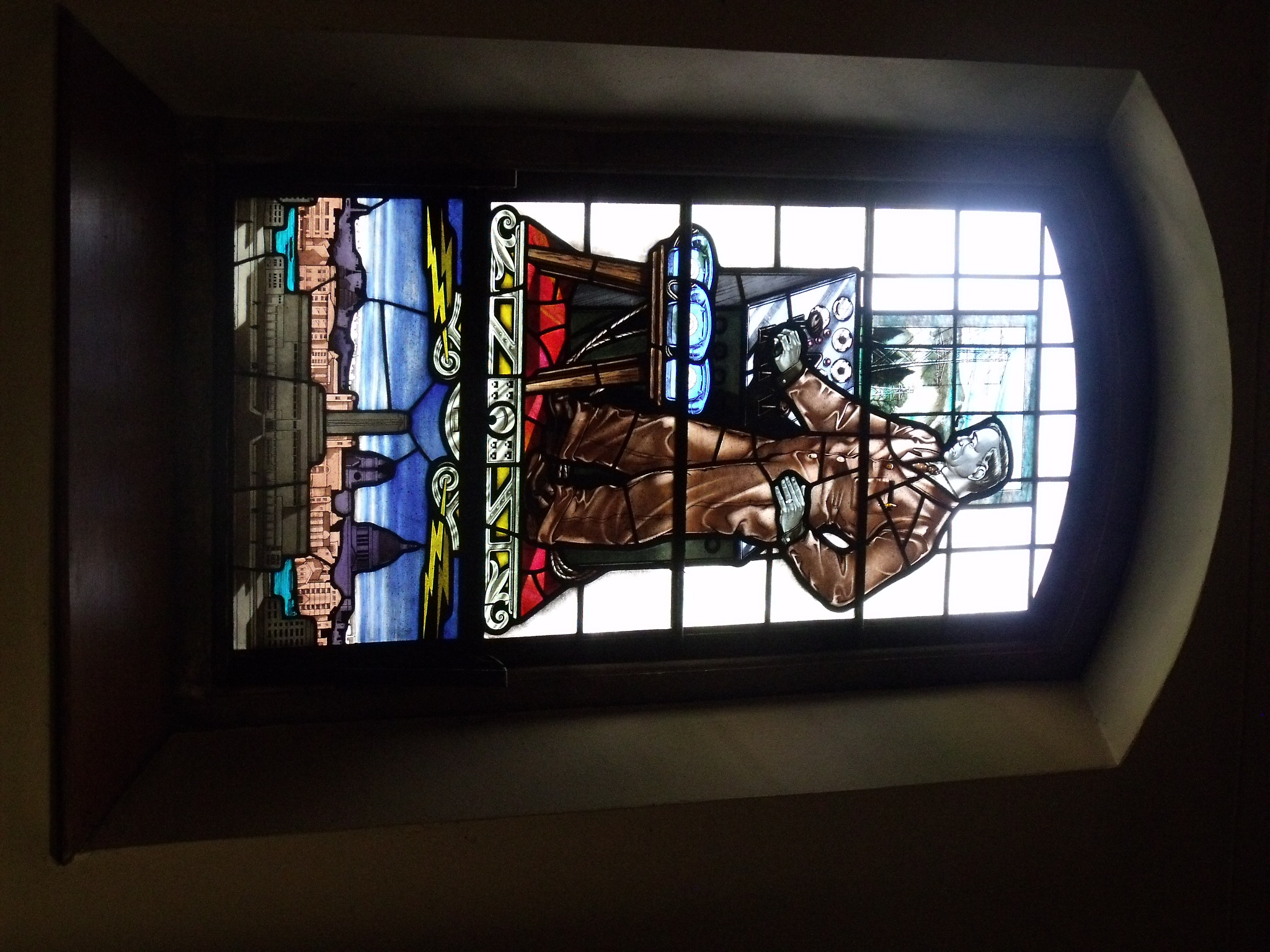 Christchurch is open every day and the signs do given a good welcome to visitors. There are some leaflets about the Christian faith available, ‘You are my child whom I love with you I am well pleased’ is simply a selection of affirming Bible verses. ‘To help you pray’ gives some prayers and ideas for prayer. There was also a copy of the famous ‘Footprints’ poem and some gospels, as well as a welcome and guide leaflet. There is more here to see than you might think, although there were only 4 visitors in the book over the last month. There is a votive stand to use and a laminated guide to Christchurch’s principle treasure, which is it’s stained glass windows. These depict facets of Southwark working life, old and new.
