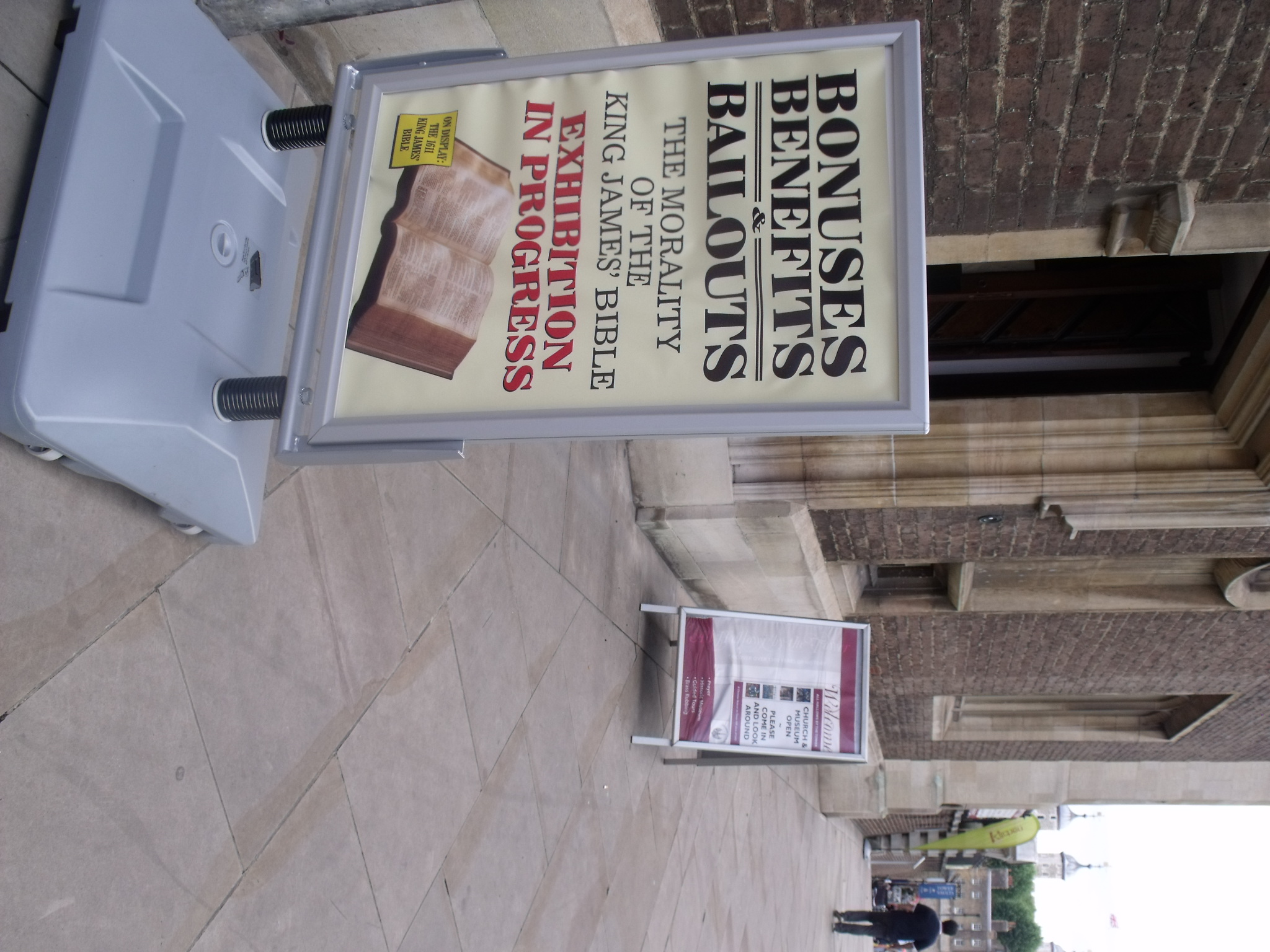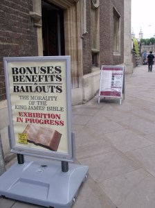 All Hallows was very busy with visitors. Many would reckon this as being the most visited church in England. They could well be right. Visitors are invited in by plenty of signs outside. The visitors book had so many entries that I didn’t count it up. There are some very friendly stewards on hand who also give guided tours. There is currently a display entitled ‘Bonuses, Benefits & Bailouts: The Morality of the King James Bible’. A good way to display the Bible and use it to give insight into the modern world. Much better than using odd verses to beat people over the head with! I enjoyed looking at this display, some items of which are very moving. The organ was being played whilst I was there. There are displays on the history of the church, and even more of this in the Crypt. The Undercroft Chapel is now columbarium, containing many rows of boxes in which are interred the ashes of those associated with the church or parish. There are guides available in many languages, a book and gift stall and a prayer board to use. Also a guide to Tubby Clayton and the work of Toc H. The churches website gives much more on http://allhallowsbythetower.org.uk/