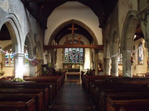 Another ancient church in a suburb of London. There has been a real effort to welcome the visitor to St. Martin’s. For a start, the sign outside says that the church is open every day from 8.30am – 4pm. The main, west door, was open and there are glass doors into the church itself. Some lights are left on. There is a real sense of peace and prayer here. The welcome leaflet says ‘it is a place were people meet every day to pray together, where they can experience times of quiet and reflection as well as joyous celebration.’ This church feels as if that is the case. Apart from the welcome leaflet, there is a good range of literature on offer here. ‘A Prayer Walk Around the Church’ really caught my eye. This is well thought out and produced. Prayer cards and post cards are on offer too. Also a couple of leaflets about Ligugé Abbey, which was founded by St. Martin in 361. There are also guides to the bells, heraldry and stained glass here as well as a good range of the excellent Gospel Imprint leaflets. New Daylight’ and ‘Upper Room’ Bible reading notes can be picked up here as well. There is a history on some hand bats to carry around. There is a children’s area under the tower.