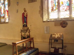 St. Mary’s is open every day. Inside I found 3 different guides, some of these multi lingual, and guides to the bells and stained glass. There are also some postcards for sale. Children have an area to use with a large amount of teddies! There is much that is good here. A history display outlines some changes that the church hope to make as well as giving some context. The church staff and PCC members have their pictures displayed as well. Some of the many memorials here are accompanied by some laminated explanations. This is something that I have not often seen. Some of the church lights come on automatically when you approach certain areas. A votive stand is provided too.