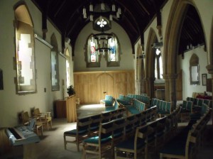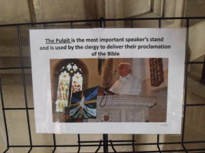 I had been recommended this church because of the efforts made to explain the Christian faith to visitors. There are some interpretation boards mounted onto music stands. These are put out after the services on a Sunday. They feature the font, pulpit, sanctuary, altar etc. and explain in simple ways what they are used for. A very good idea.