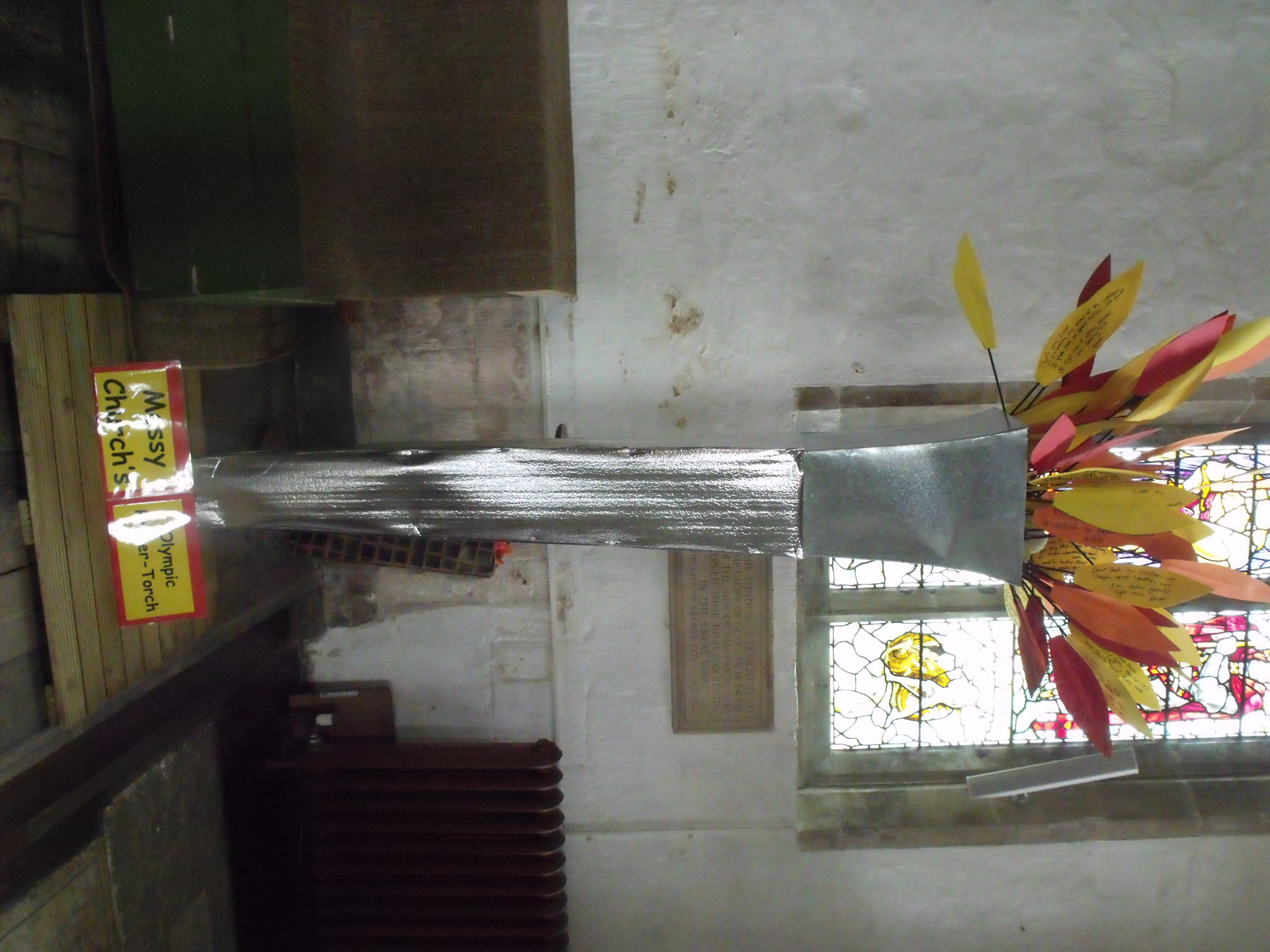 The children of the church have made a large Olympic flame which is on display. This is part of ‘Messy Church’ which has become increasingly popular.