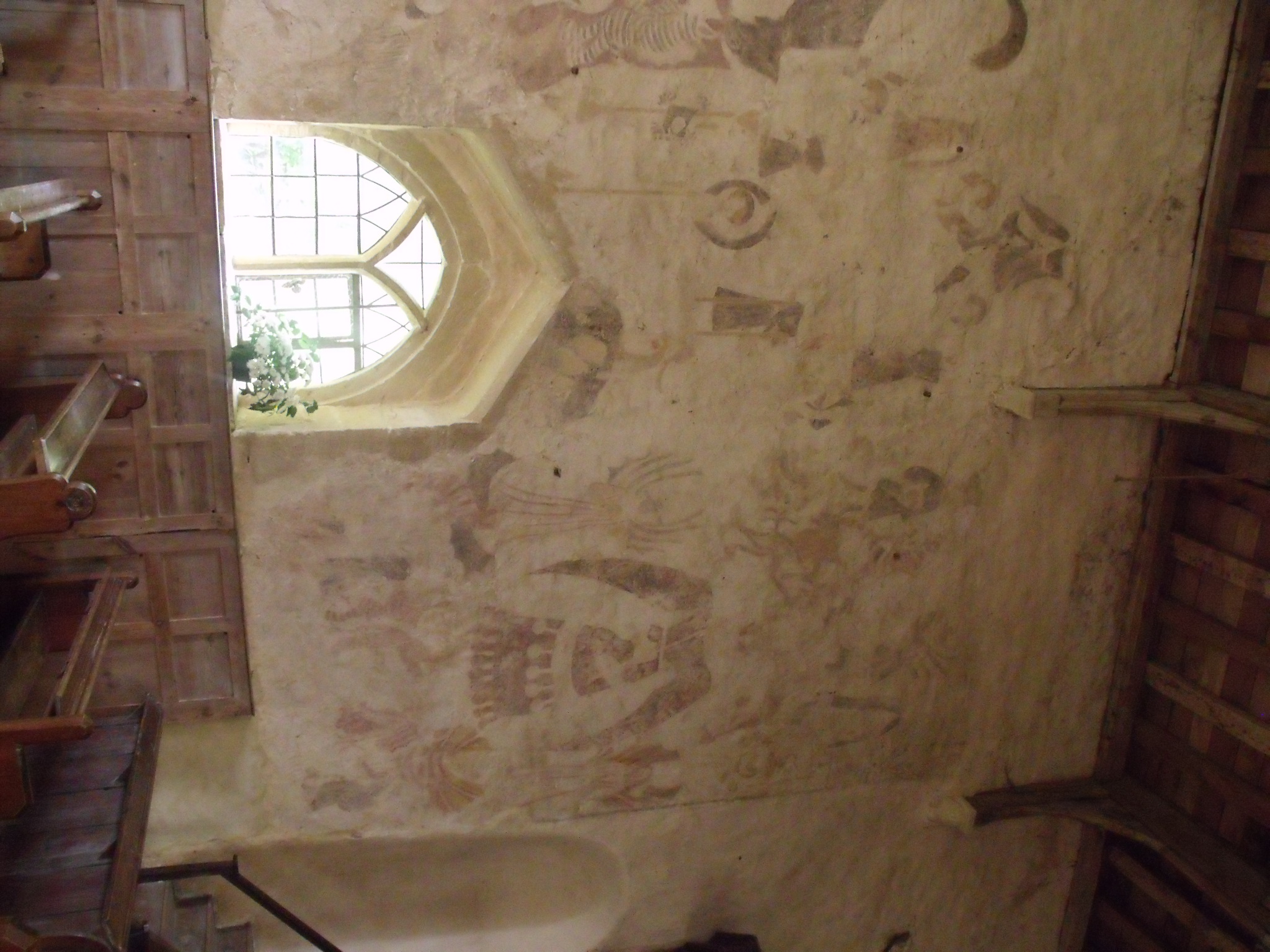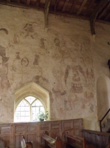 I had tried this before but it was locked. It was open this time and well worth seeing. A very atmospheric church with no electric light. This church is famous for it’s wall paintings – there is a leaflet about these. Most of these wall paintings have disappeared over the years in other churches. St. Nicholas wasn’t used much from 1851 – 1912 so this saved them. They had been whitewashed over at the Reformation and were discovered in 1913. It gives a good idea of what a medieval church would have been like. They are rather special.