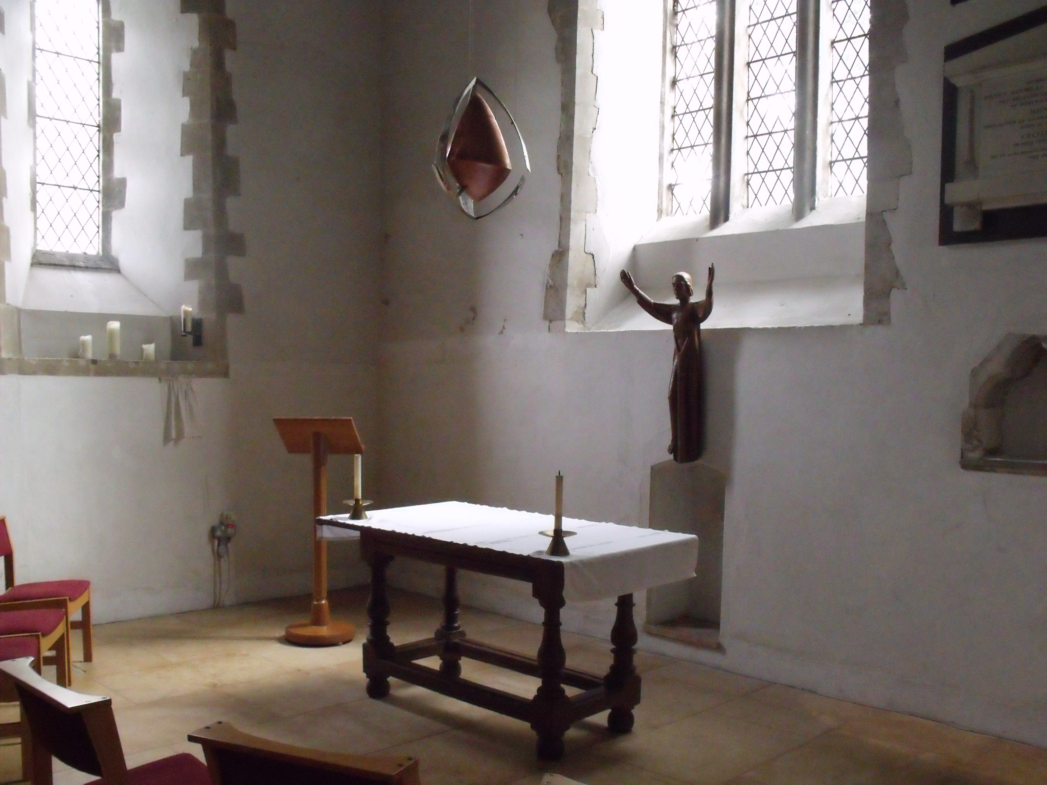 There is a votive stand here as well. This is in a side chapel in which the blessed sacrament is reserved. There are some cards and a booklet with prayers in to guide pilgrims.