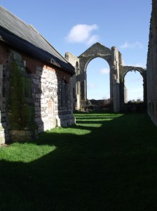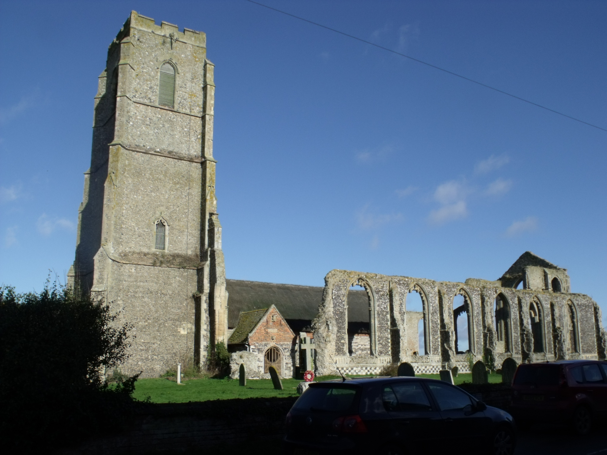 A church within a church. The original was a huge 15th century church probably financed by the wealthy incumbent, William Yarmouth. It was always far too big for such a tiny place. In 1672 the parishioners built a much smaller church within the shell of the old one by using materials from it. The large tower was preserved as a sailor’s landmark and still contains a ring of five bells. This really is a lovely spot but the sea is fast enroaching on this bit of the coast and I wonder how long it will be before St. Andrew’s succumbs as many other places have to the restless North Sea. Visit it whilst you can!