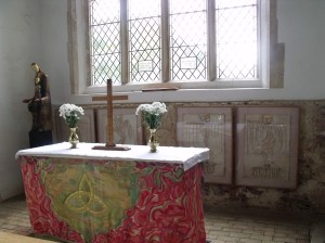 This church was originally two, semi detached, buildings hence the double dedication. The St. Margaret’s Chancel is used for prayer and there is a prayer request board and a sand tray for votive candles. This is very much living church and there is a good selection of banners around. It is also well cared for.