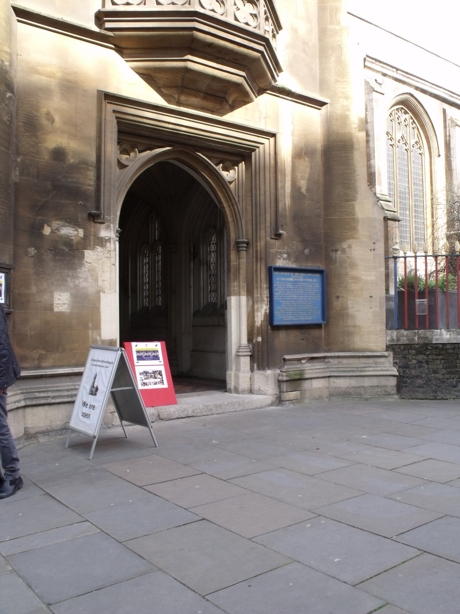 Outside a simple A frame welcomed any who would come in. The church is normally open each day but I did find it closed for some rehearsals the last time I visited. If you want to look inside then it is probably best to check the website – http://www.st-sepulchre.org.uk/
