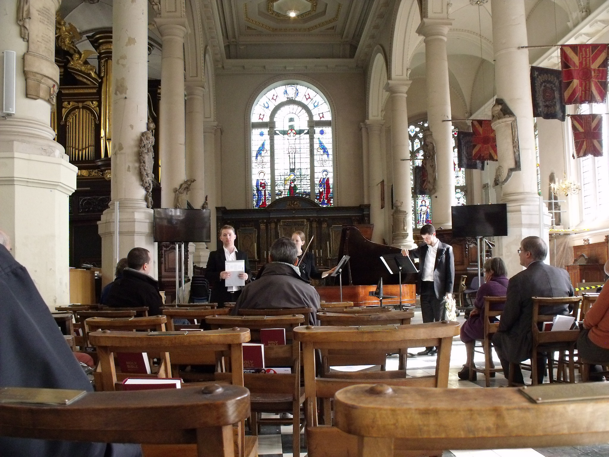An interesting Church in a busy part of the City. It is actually the largest parish church in London and has a long history. It is known as ‘The Musicians Church’ and, appropriately enough, at the time of my lunch time visit had a concert organised by The Anglo – Japanese Society of Wessex. It was given by a trio called Trio SOL who were playing a selection of modern chamber pieces. Very good they were too and there was quite an audience for this free concert.