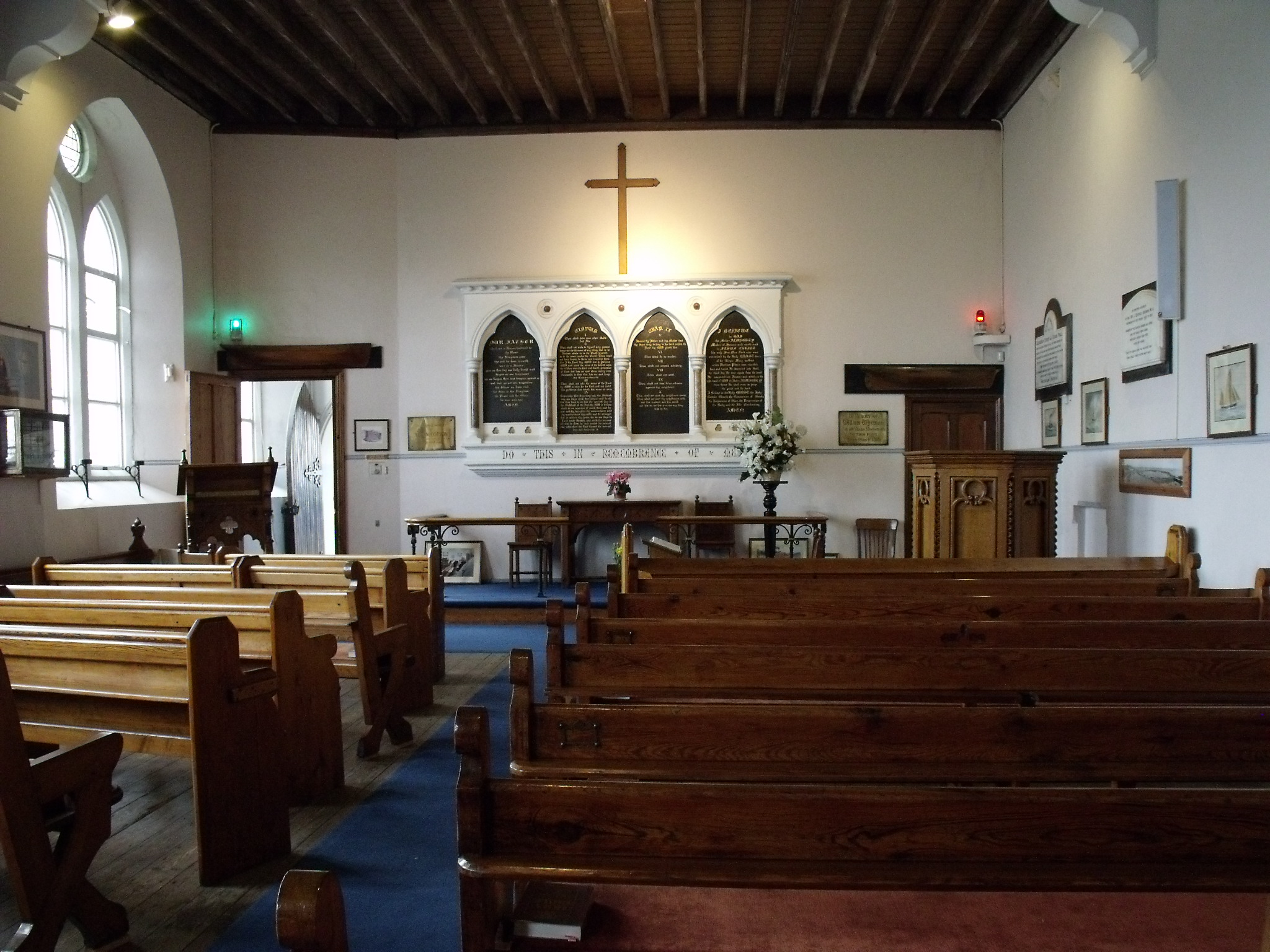 Down by the harbour there is a very unusual little church. It was built as both a Church and as the Sailor’s Home and Harbour Mission, being opened on 8th July 1878. Part of the building was used as a hostel for ‘Smack Boys’ who were employed in the fishing fleet. It also took in the survivors of shipwrecks. The guide book tells some of these stories and some 3,300 ship wrecked mariners were cared for at no charge. Evening services are held here during the summer months.