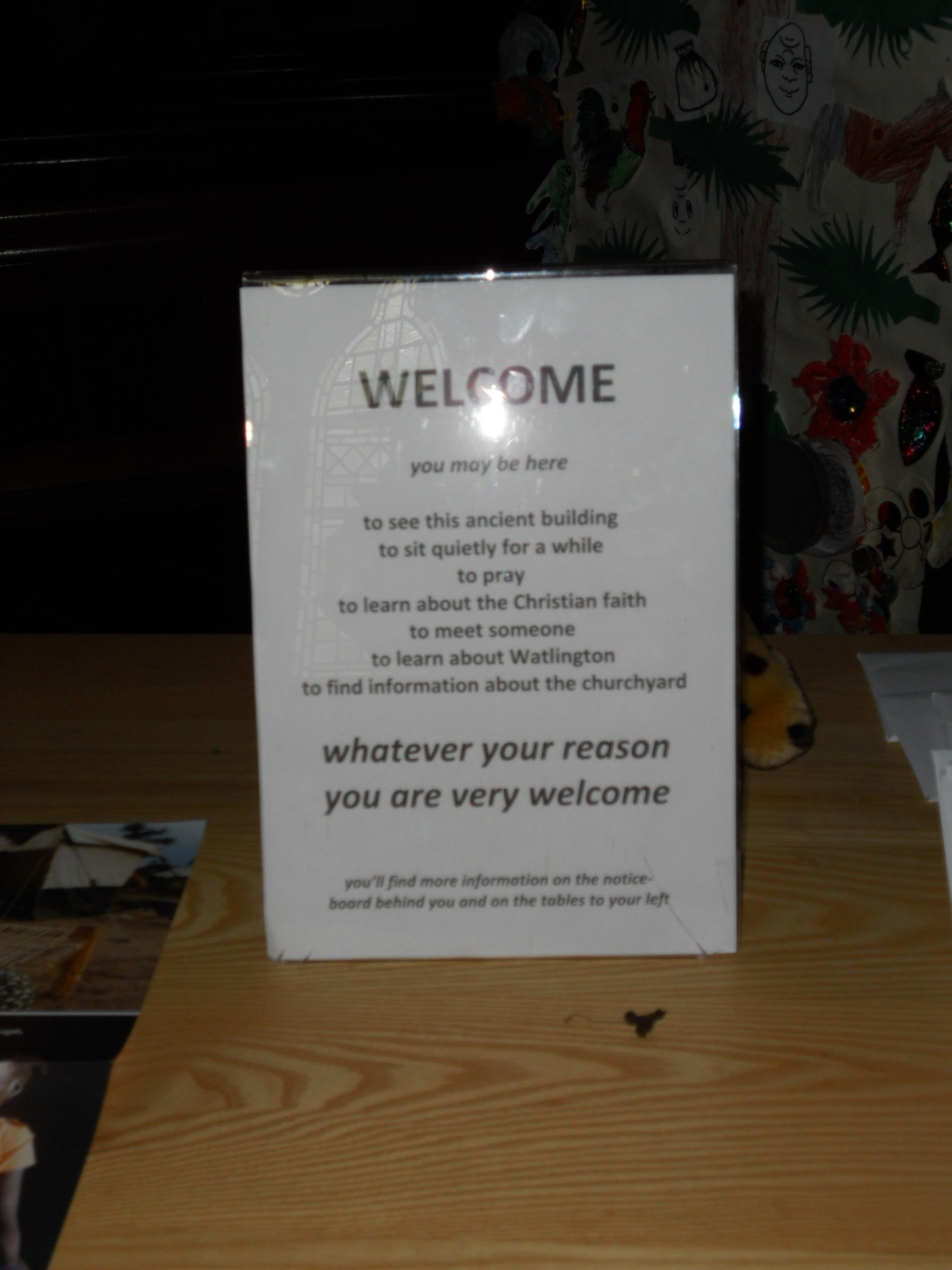 On the table near the door is a lovely welcome notice, ‘whatever your reason you are very welcome’ – very good. There is a selection of the good Oxford Diocesan leaflets available but no church guide, which is a pity as this is an interesting church. There is a laminated guide hung on the wall to borrow as the visitor walks around but the lack of a guide is an omission here. There are mugs, shopping bags (these seem to be popular in many churches) for sale. Also a very good churchyard record with a lot of detail in it. Very welcome for those researching family history. This must have been a real labour of love.