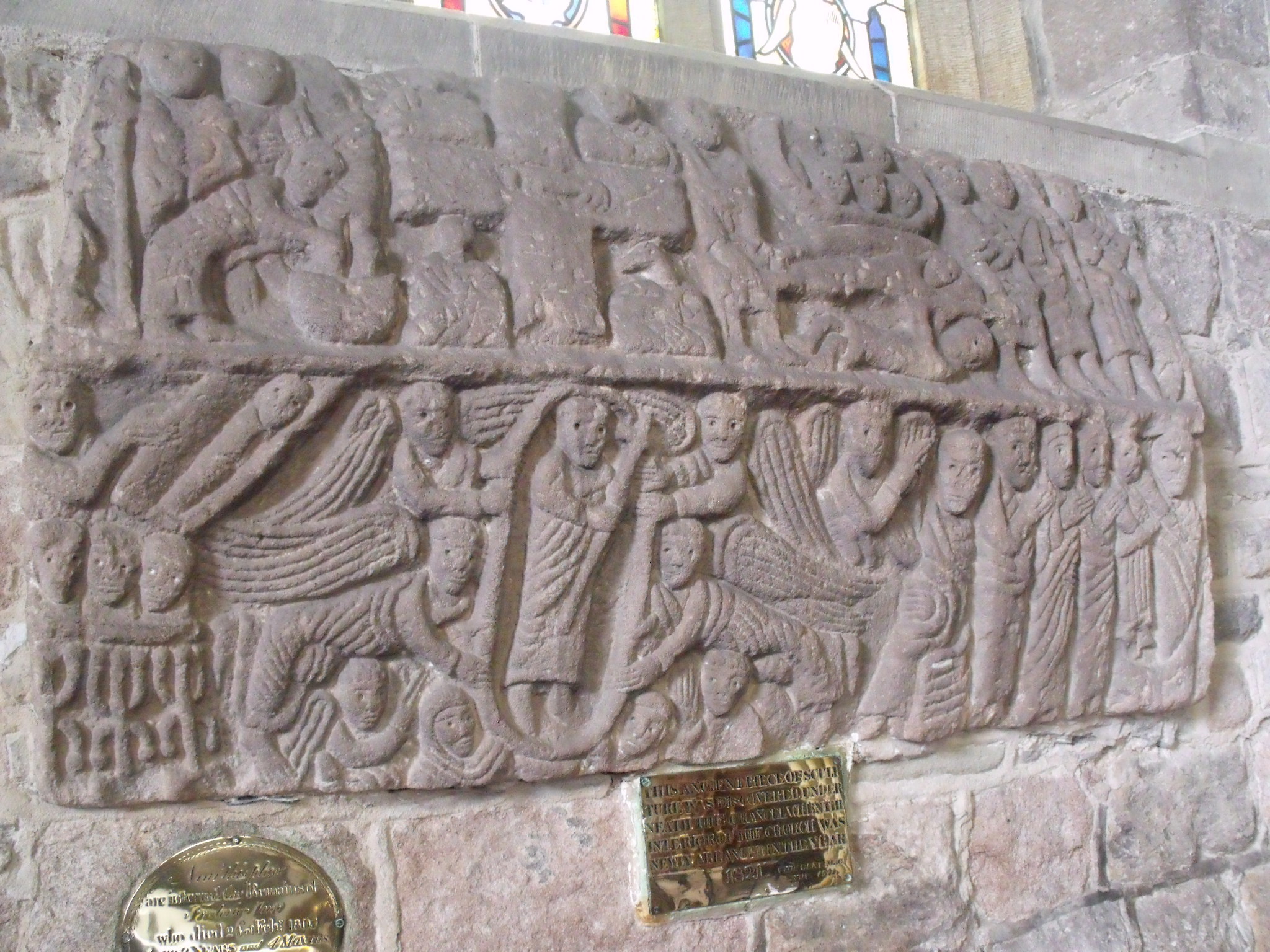 The Wirksworth stone, found under the floor in 1820 is prominent on the wall with free leaflets to explain the scenes depicted on it. It is wroth taking some time over this as it is interesting.
