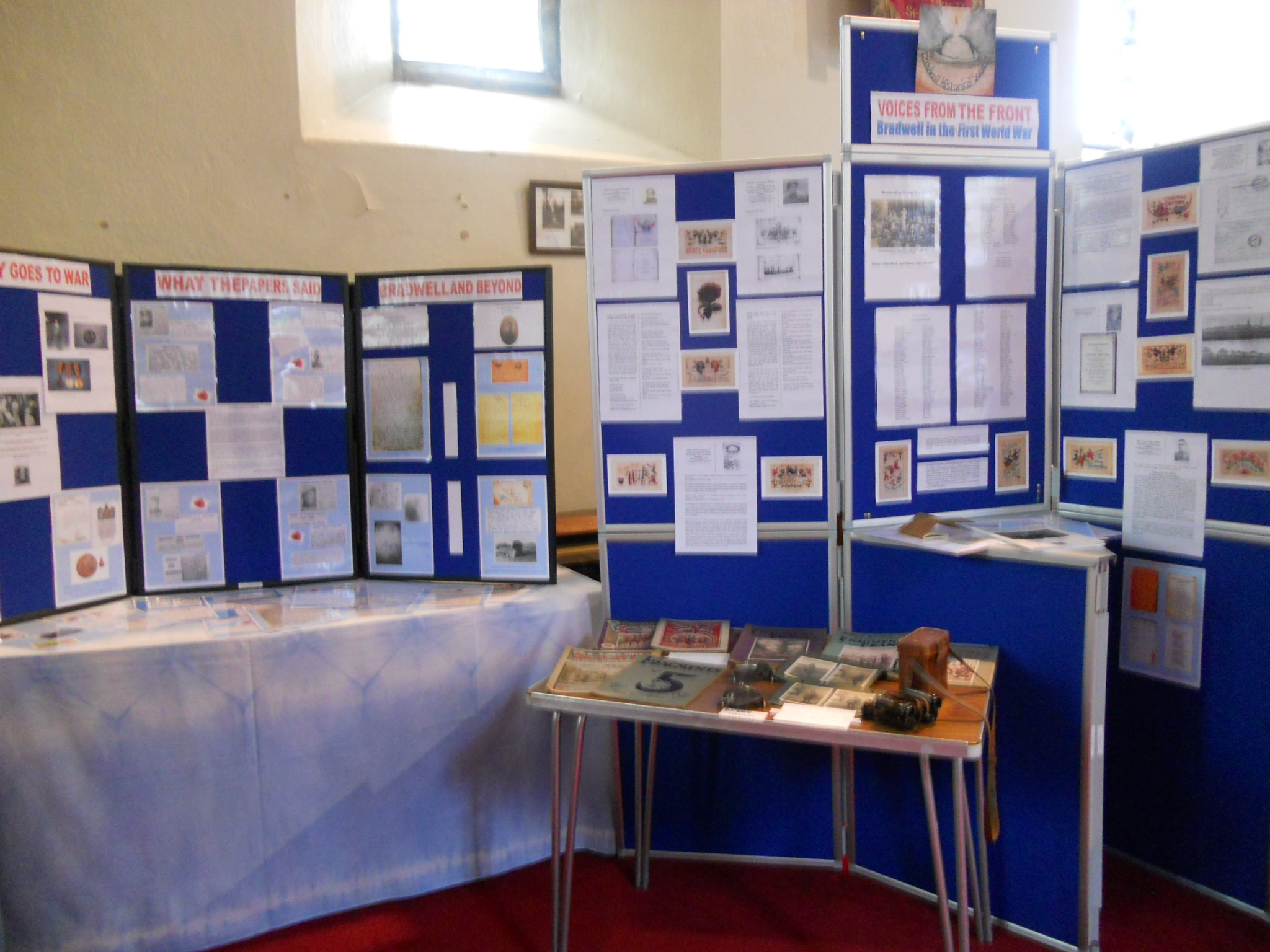 A prayer cross had been set up near the pulpit and prayers could be written on ‘post its’ and stuck on it. Quite a few people had done this. A World War 1 display emphasised the local links that affected many in the village in all sorts of ways.