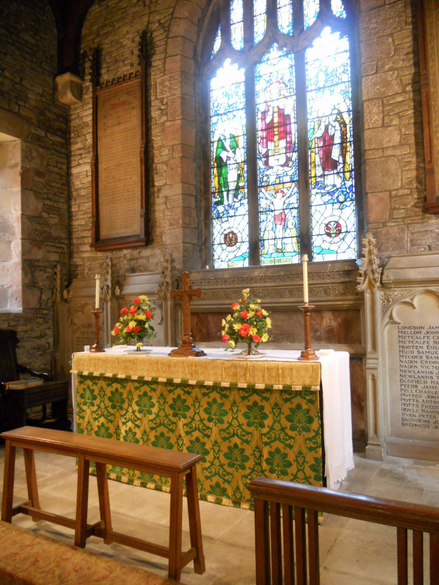 There is a guide and some bats to carry around also some folders re the stained glass here – there is a nice modern window which was put in after an arson attack destroyed the original. Also a small display about those serving in the armed forces. I didn’t count the visitors book but my guide told me that they get quite a few people coming along. I rate St. Thomas’s as OK for the purposes of this study. There doesn’t seem to be a website.