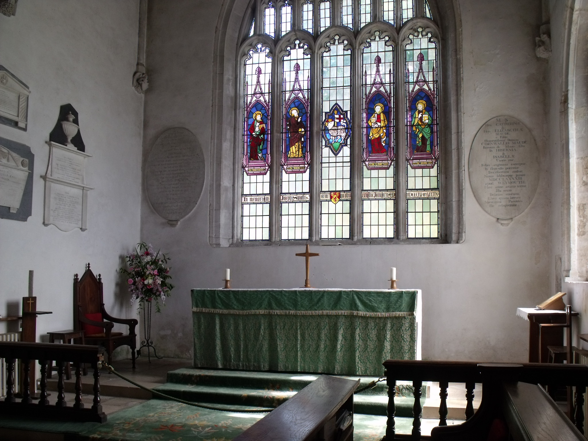 A short trip through busy Weymouth to Wyke Regis. An impressive church on a hill. It is not the easiest place to park at but a motorbike has some advantages here! The sign outside gives details of Sunday services only but there is a good welcome in the porch. Inside, I found a guide and an interesting church which is very well cared for with nice shiny brass. A well loved place.