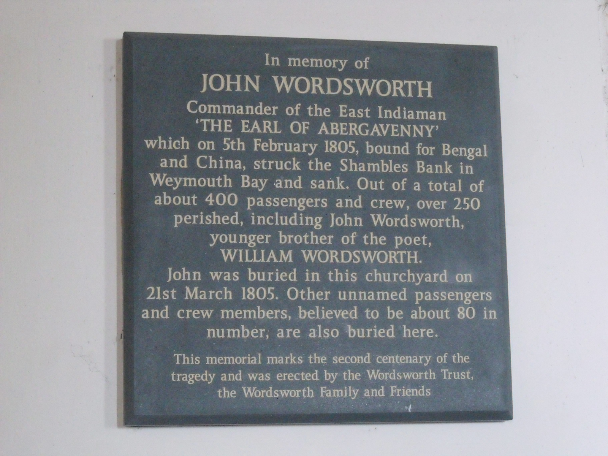 There is an interesting memorial to John Wordsworth – Williams brother who perished, as so many have done down the years, in a shipwreck. He is buried in the churchyard somewhere with the other victims.