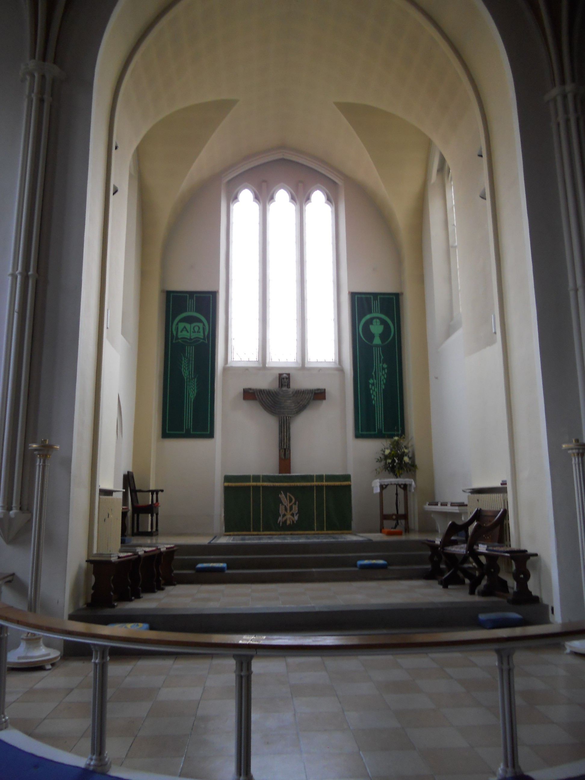 Inside there was a friendly steward who spoke very warmly of the church and pointed out things of interest. There were some good leaflets – a welcome one, a chantry roll to request prayer for those who have died, a baptism leaflet and a monthly intercession one in which the parish’s roads and people are prayed for. Too few places do this – I have come across only a handful in all the churches I have visited. There was also a locally produced booklet ‘this prevailing presence’ which is a booklet of prayers for use before and after the celebration of the Mass. That also tells you what sort of parish this is. The church is a member of Forward in Faith.