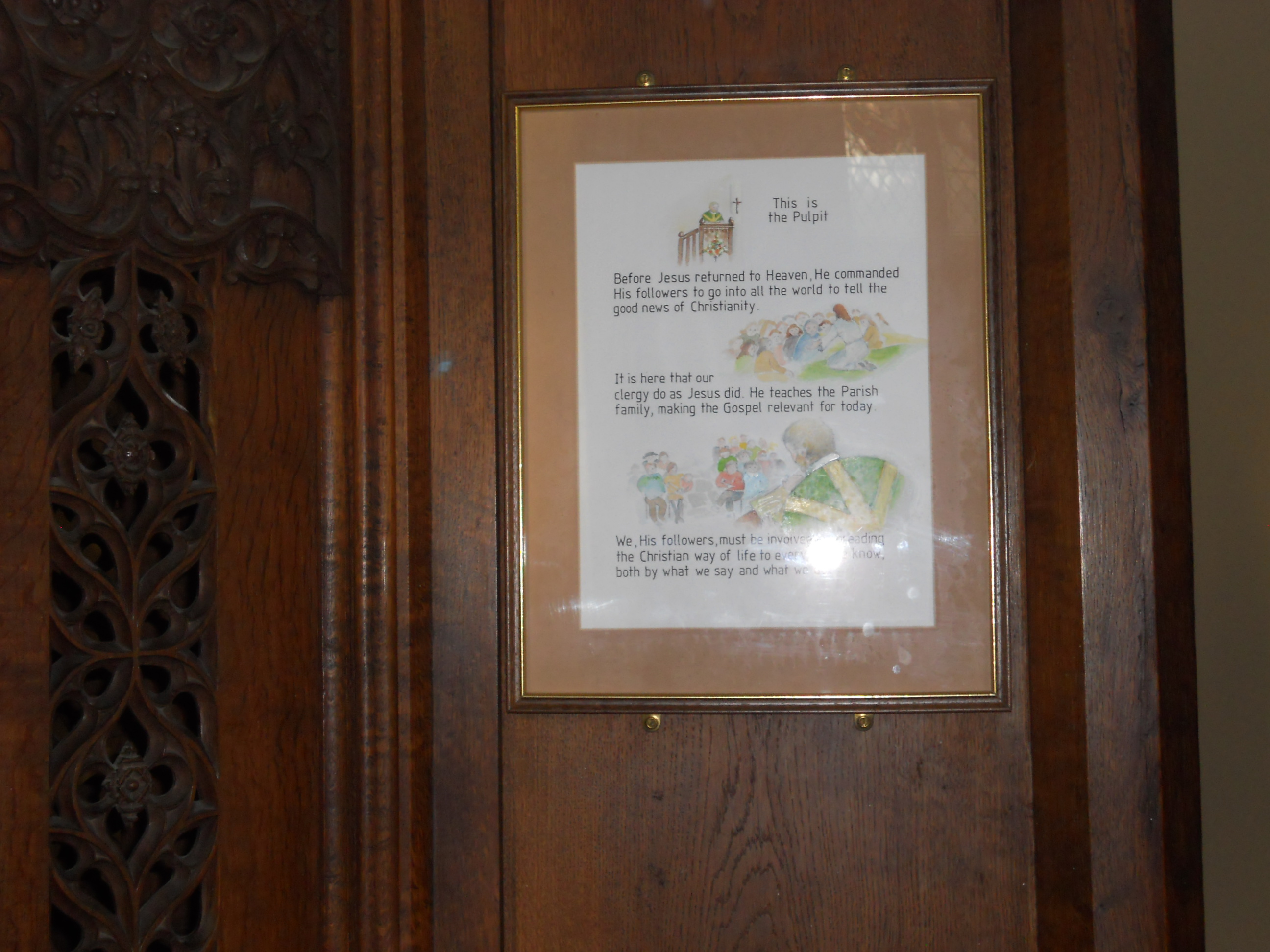 Two votive stands are available to use and there is a prayer request board as well. One thing that sets St. Mary & St. Giles apart is the interpretation boards around the church. They are on features such as the pulpit and Blessed Sacrament Chapel. They are very good and it is good to see this as we cannot assume that visitors know what church furniture etc. is for.