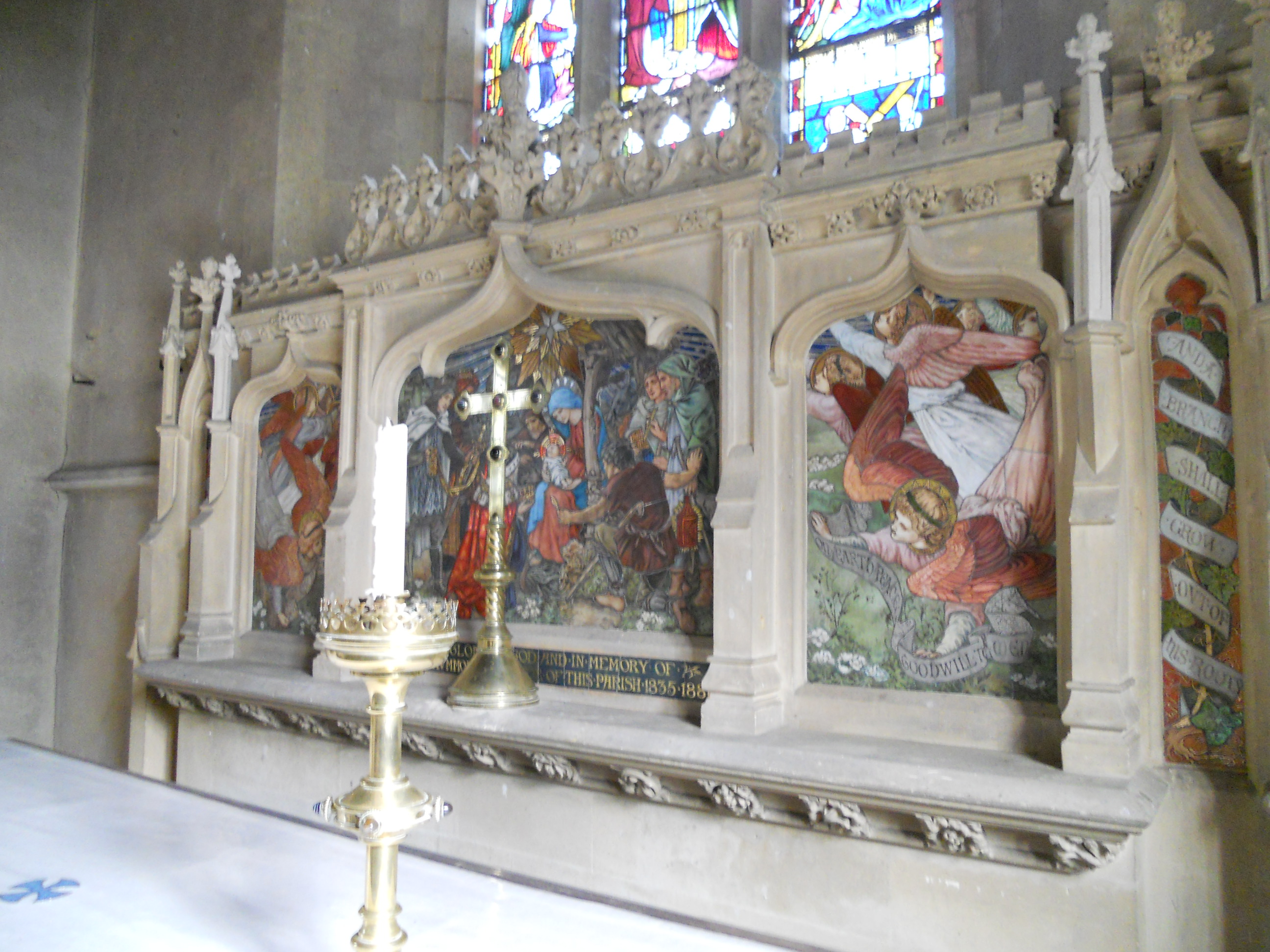This is an interesting church to visit with quite a bit to see. There are carving and paintings on the pillars and a lovely reredos which dates from 1899 and is in memory of The Revd Heneege Drummond who was Rector here from 1835 – 1881.