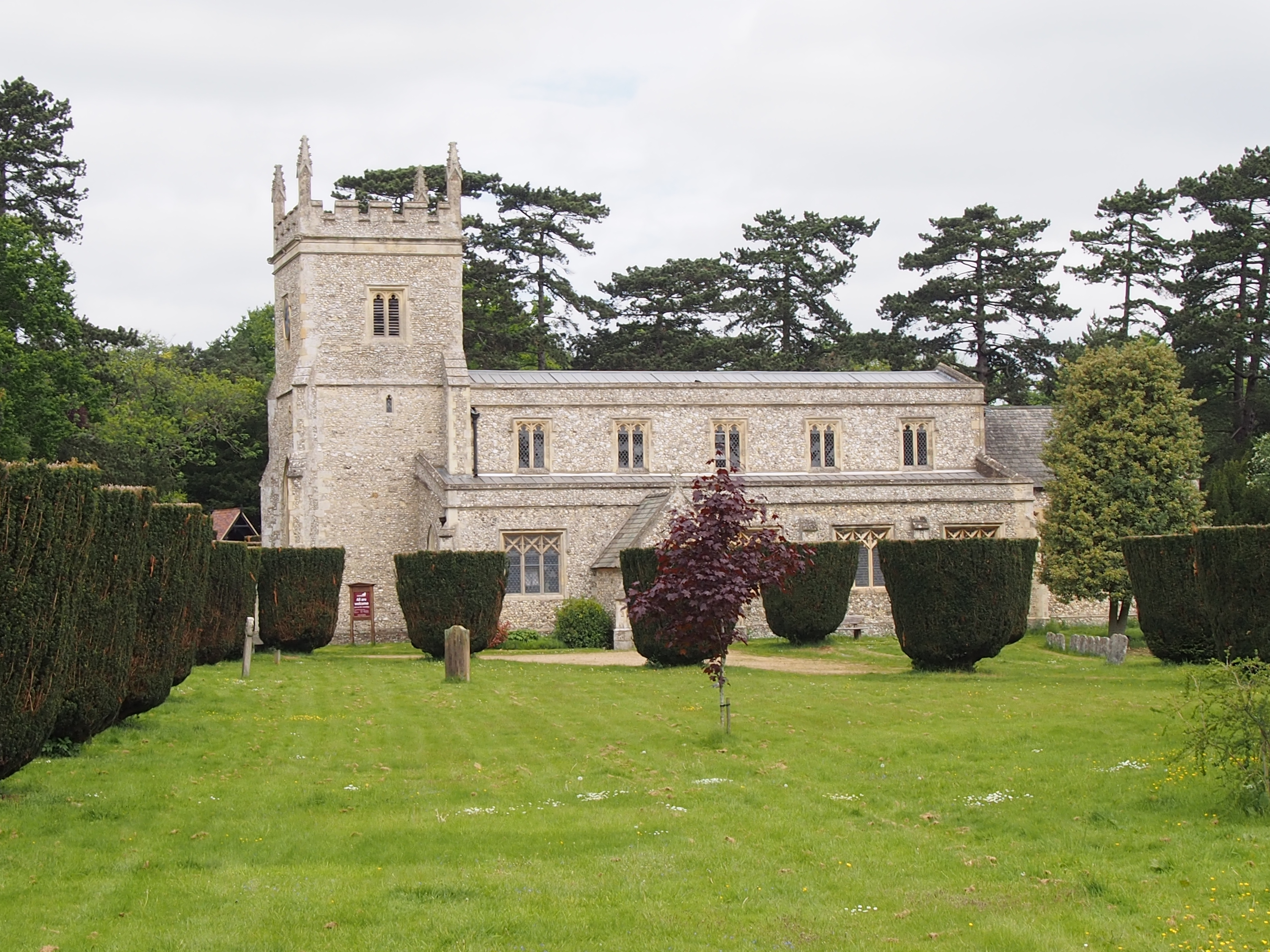 St. Lawrence is set amongst a large churchyard with an avenue of yew trees.