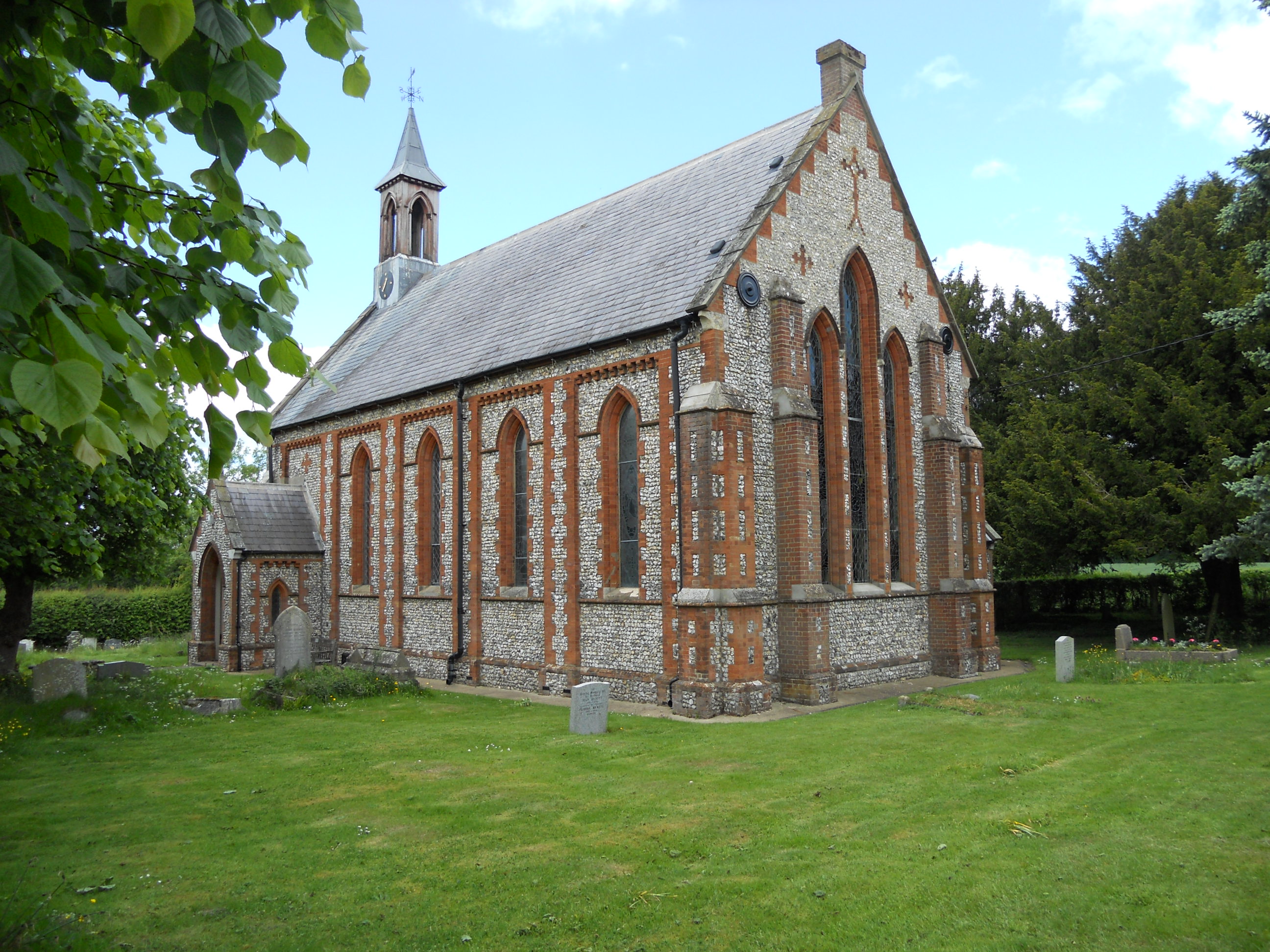 A delightful little church which is something of an ecclesiastical oddity. The church is in Hertfordshire but is linked with the Chenies Benefice which is in Buckinghamshire and a part of the Diocese of Oxford. It was built in 1838 and is George Gilbert Scott’s first church, built for his Uncle who was Rector.