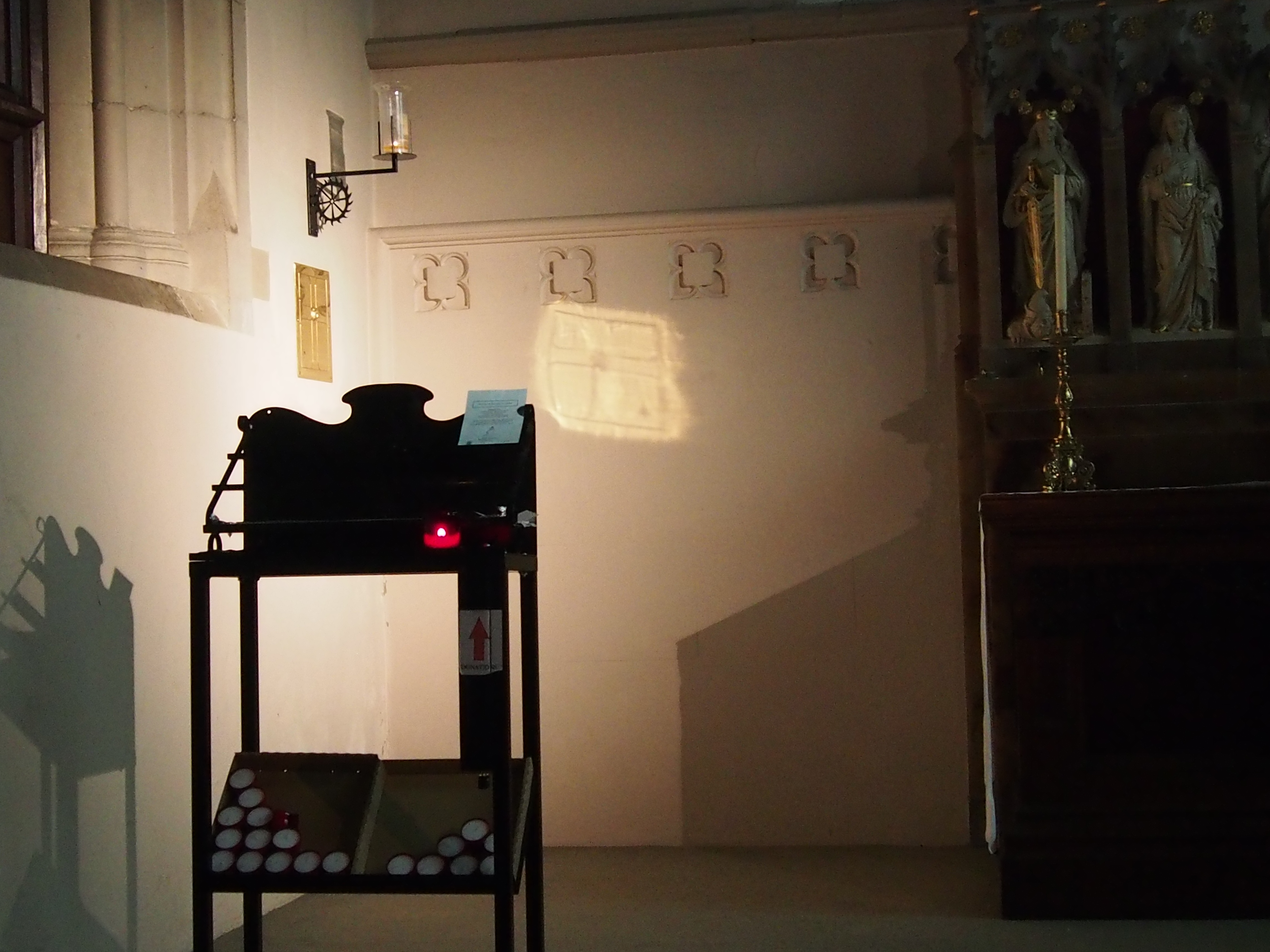 There is a prayer board and it is made clear that these prayers are taken seriously and prayed at the services here. ‘Saints and Pilgrims’ was on display – a St. Albans Diocese book of saints etc for each day. The Lady Chapel is set aside for prayer and a votive stand to light candles.