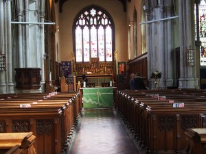 Inside, I found a prayer request box, a prayer leaflet, a welcome board and a range of leaflets about the church and what goes on here. There is a history guide to carry around on a visit and displays about the various clubs and groups that are associated with the church. ‘Saints and Pilgrims’ too – this seems to be almost universal in Herts churches. All this gives the impression of a lively place which is friendly and worth being a part of. There is a votive stand and whilst I was there a family were explaining to a young child why they were lighting a candle in memory of a loved one. One simple instance of why it is so important for a church to be open during the week. This place is a focus of their grief and a way of offering memories to God. If it wasn’t open what would they do?