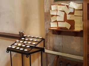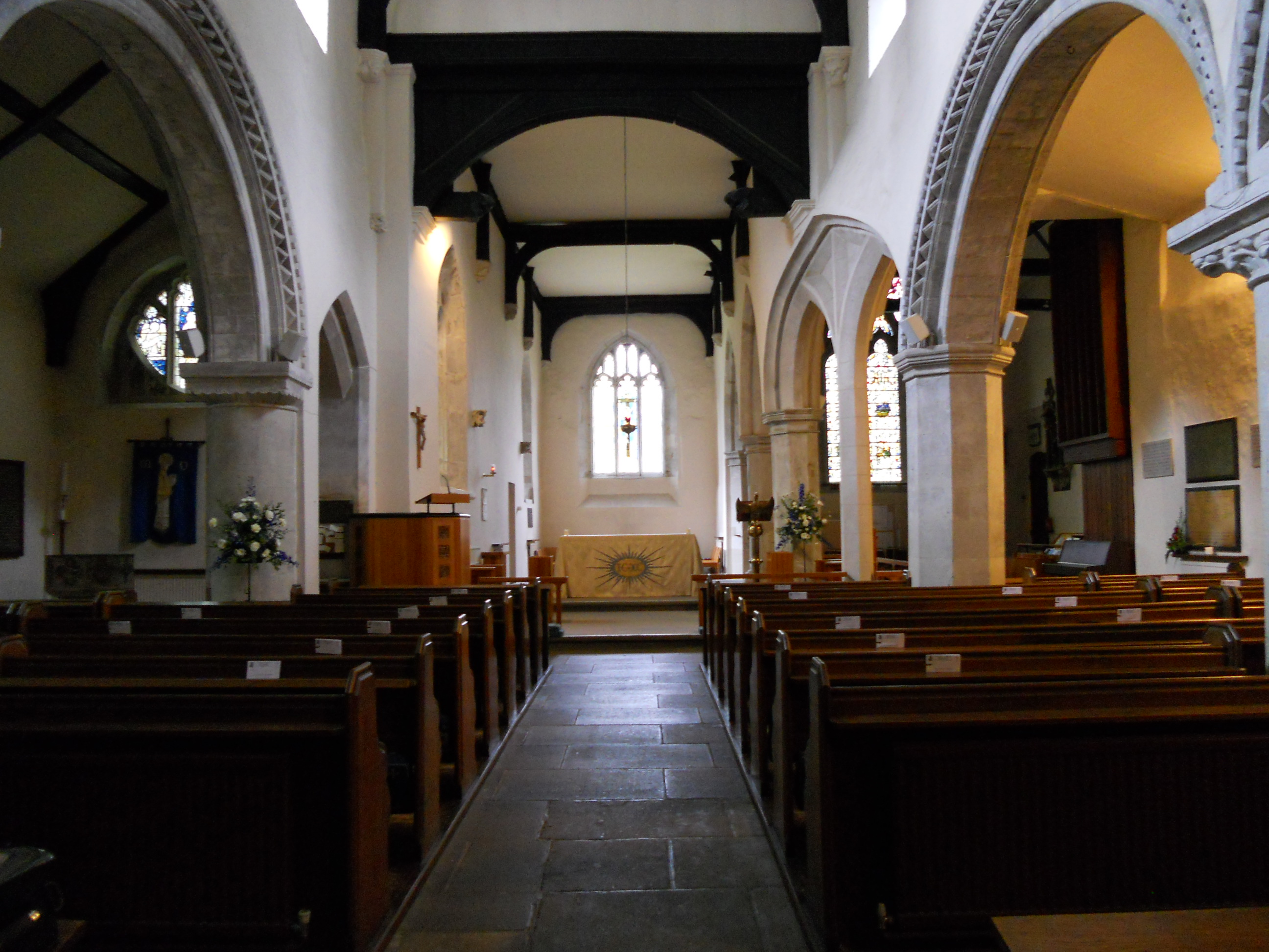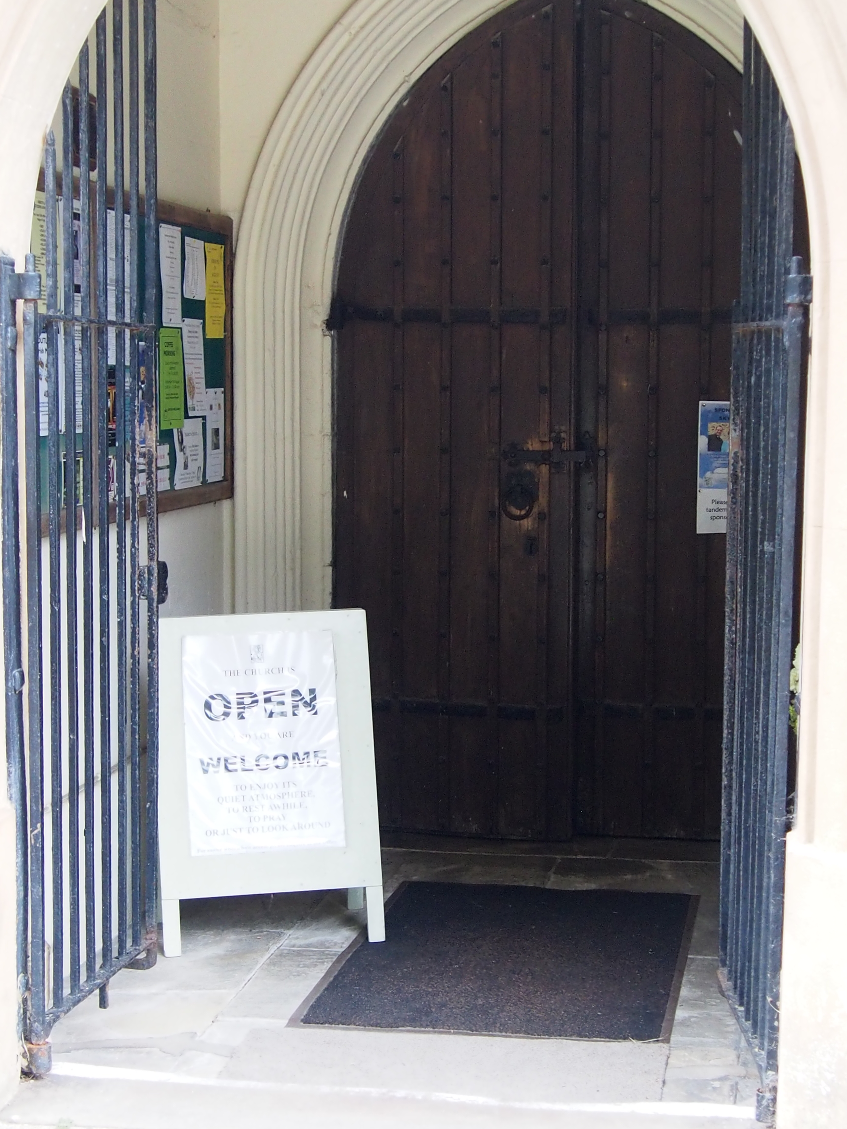 St. Lawrence was open with a welcome notice on an A frame. This is an interesting church to visit. There are some ‘bats’ to take around and a ‘Detective Trail’ which is aimed at children but interesting for adults too! On sale are postcards, notelets etc. Also some gospels and ‘Our Daily Bread’ to take away. Some lights are left on and there is a votive stand and prayer board to use. The sacrament is reserved here. There was a good leaflet of prayers.
