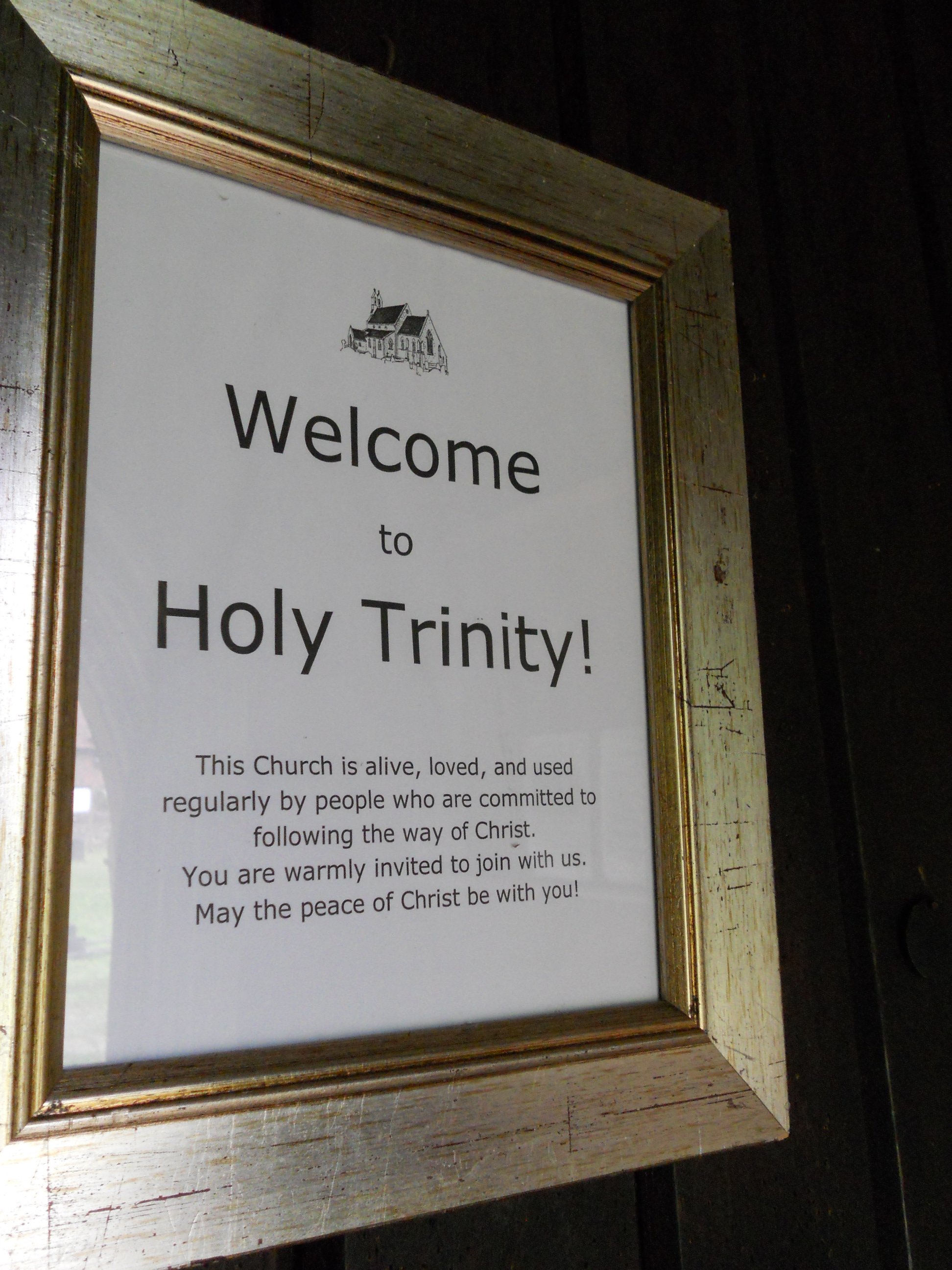 Holy Trinity is a lovely little church in a well kept churchyard. It was locked but a sign in the porch does give key holder information and says that the church is open on Mondays 2pm – 4pm and Saturdays 10-12. This is much better than just leaving it locked at all times outside services and does make it clear that people are welcome to call in.