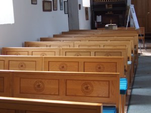 A church that would be easy to miss if it wasn’t for a very welcome sign on the road. It is open each day. Steeping down to the light interior I found a very well looked after church with some nice modern pews. There were a some of the sgmLifewords booklets to take away and a display about how to help with the current refugee crisis. There is a folder of good prayers to use and the village quilt is displayed on the wall – these are always worth a look at and I admire that work that has gone into them. 40 people had signed the visitors book this year. A nice church to visit.