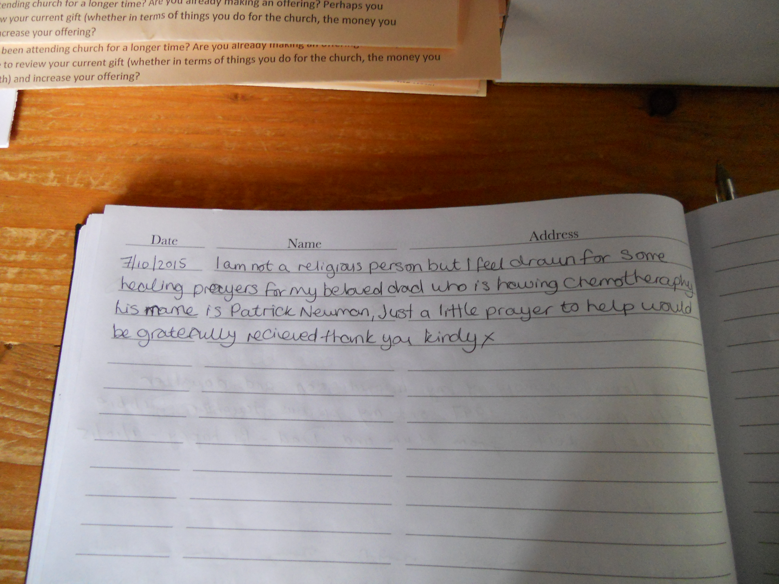 Holy Trinity is in the old part of Stevenage and is open each day and gets well visited judging by the entries in the visitors book (14 already this month). When looking at this I noticed a comment that shows the value of church being open. A picture of it is shown here.