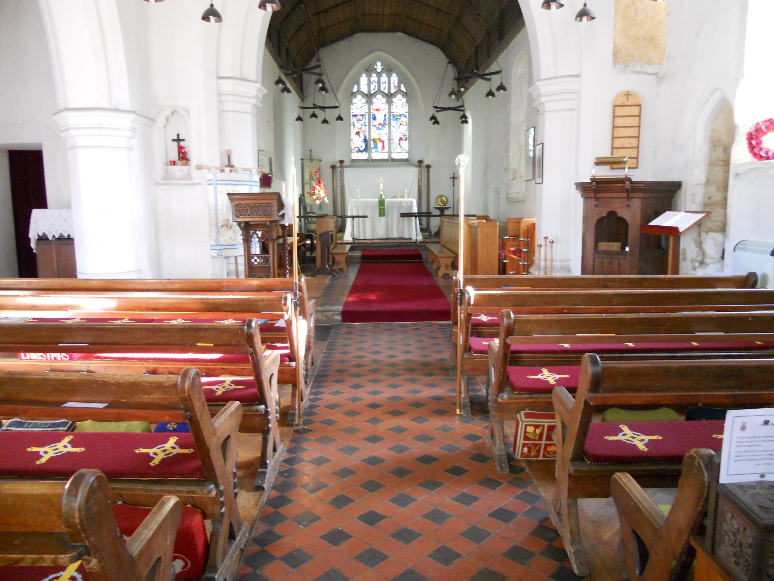 St. Mary’s is well singed off the road through the village. It is beside a busy railway line but is a well kept and peaceful church inside. It is very well kept. Inside I found a folder of interesting old pictures of the church as well as the usual ‘Saints and Pilgrims’ book. There were 38 entries in the visitors book so far this year. Some preserves and notelets were on sale.
