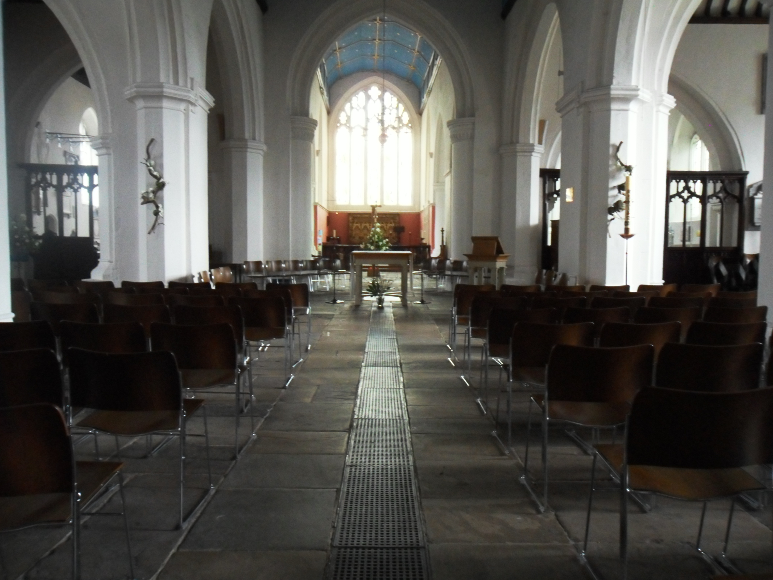 This is a church which divides opinion, at least as judged by reading the comments in the visitors book. The interior has been reordered with modern chairs and a very usable area at the west end, known as the pavilions. This has two meeting rooms, a kitchen and gallery seating.